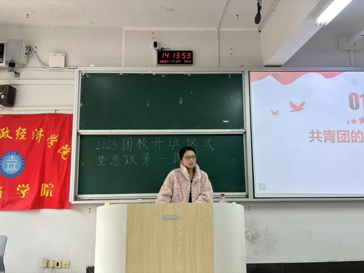经济学院团总支书记宋赛男老师以《新时代合格共青团员——努力成为堪当民族复兴重任的时代新人》为题给学员授思政第一课。课上,宋赛男老师以“共青团的光辉历史”“团的基本知识”“团员的权利与义务”“青年,你为什么入团”四部分展开授课,以自己的亲身经历深入浅出进行讲解,为学员筑牢思想根基,助力青年明确方向,以更昂扬姿态投身学习与实践。