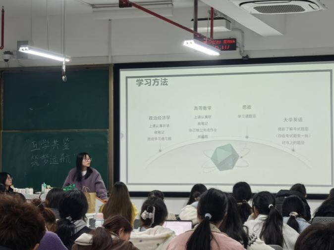 为帮助25级新生快速适应大学学习生活,摆脱入学迷茫,明晰学业方向和成长路径,经济学院于11月27日晚在雷锋书院举办了“互学共鉴,筑梦远航”学习经验交流会。此次活动特邀七名23级、24级优秀学生代表,向25级新生分享自己的学习经验。