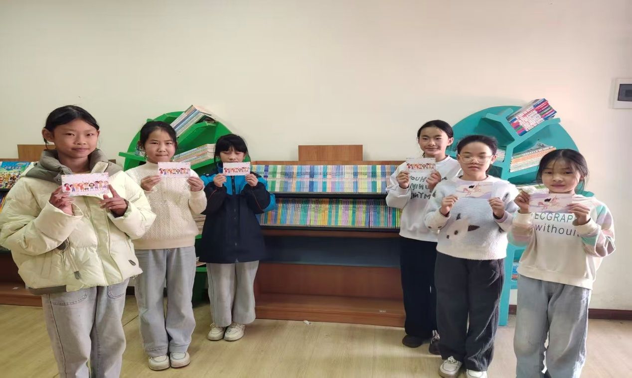 孩子们拿着湖财学子手写的爱心明信片,笑容灿烂如阳——这些卡片成了连接大学生与乡村儿童的情感纽带;