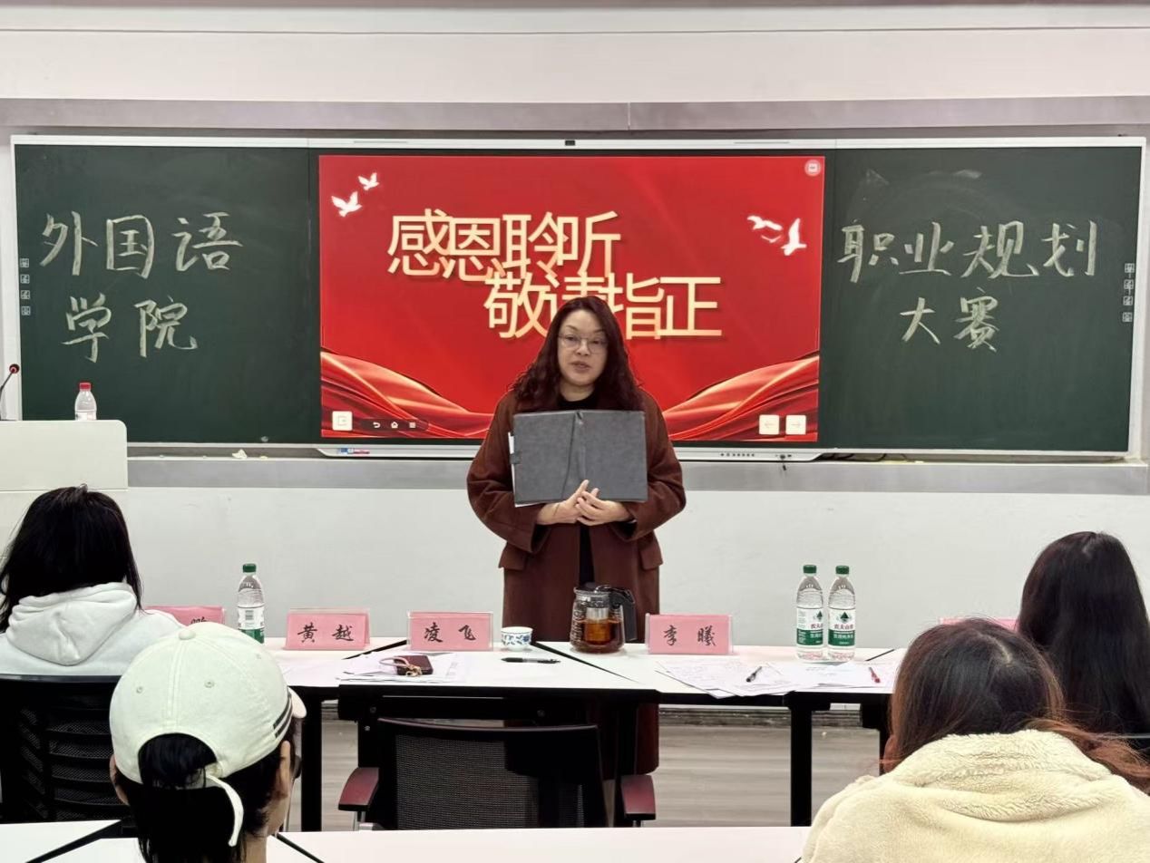 凌飞在赛后总结中对选手陈述逐一给予精辟指导。她指出,参赛选手表现出了饱满的参赛激情,在职业目标、自我认知与行业分析等方面把握准确、阐述全面。最后,她希望外国语学院学子能立足实际、紧扣时代,将个人成长与国家需求、社会进步紧密结合,从而提升职业规划的深度与价值。