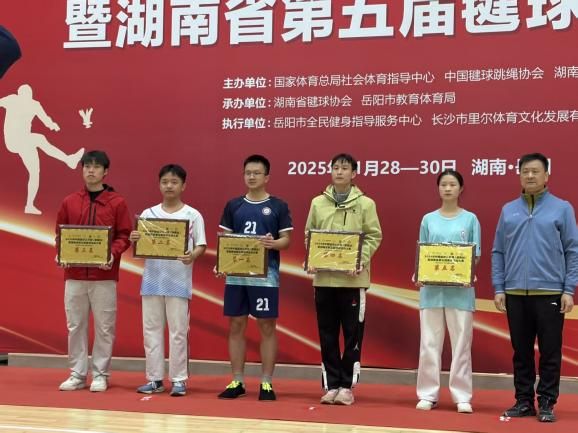 11月30日至12月1日,2025年中国毽球公开赛(湖南站)暨湖南省第五届毽球运动大赛在岳阳市体育馆圆满落幕。best365官网体育学院毽球队奋勇拼搏,在花毽个人单项上,以1金5银3铜的优异成绩载誉而归。经过激烈角逐,五人混合团体接力计时计数赛两支参赛队伍分获第三名、第四名,充分展现了体院学子卓越的竞技水平和奋发向上的精神风貌,这份成绩单凝聚了全体队员的汗水与智慧。