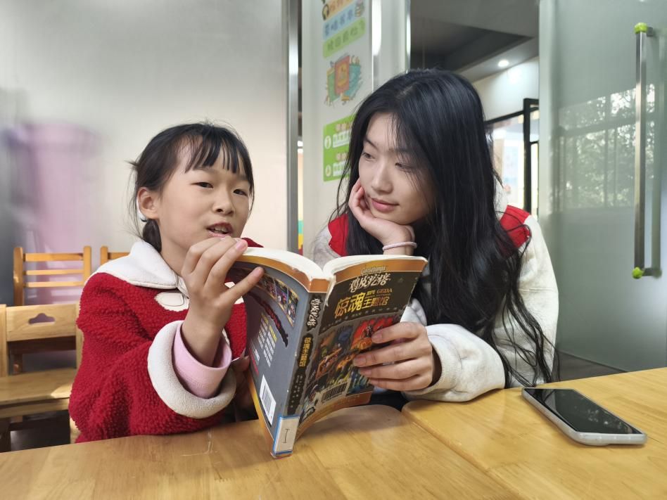 志愿者带领小朋友读书