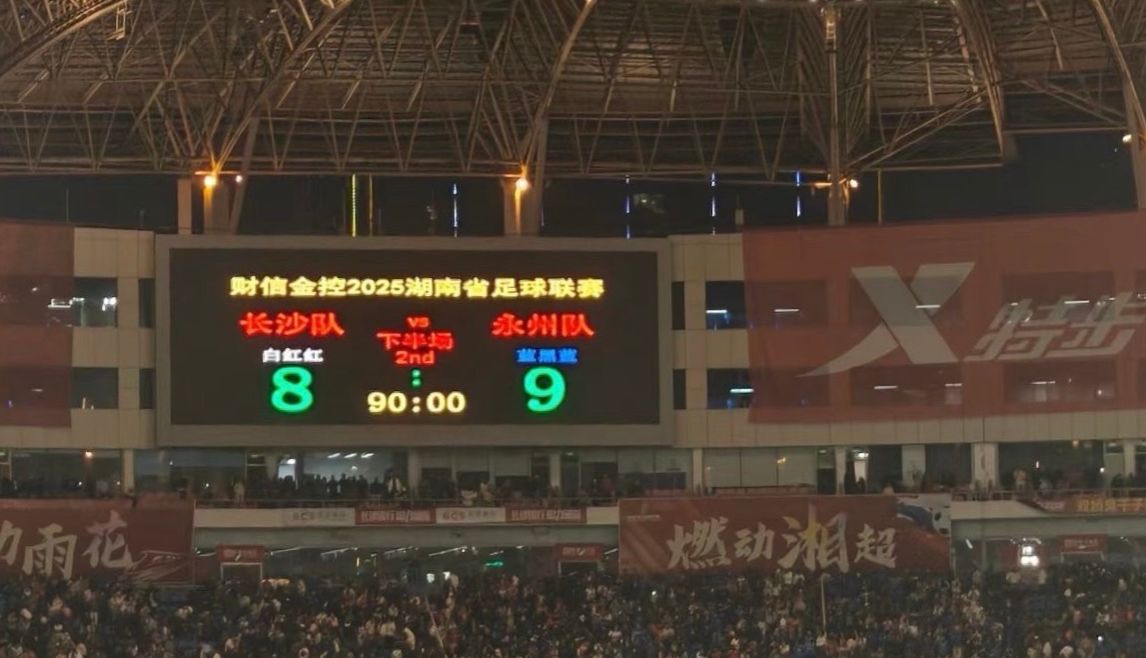 经过9轮点球大战,永州队以总比分9:8淘汰长沙队,成功晋级湘超总决赛。