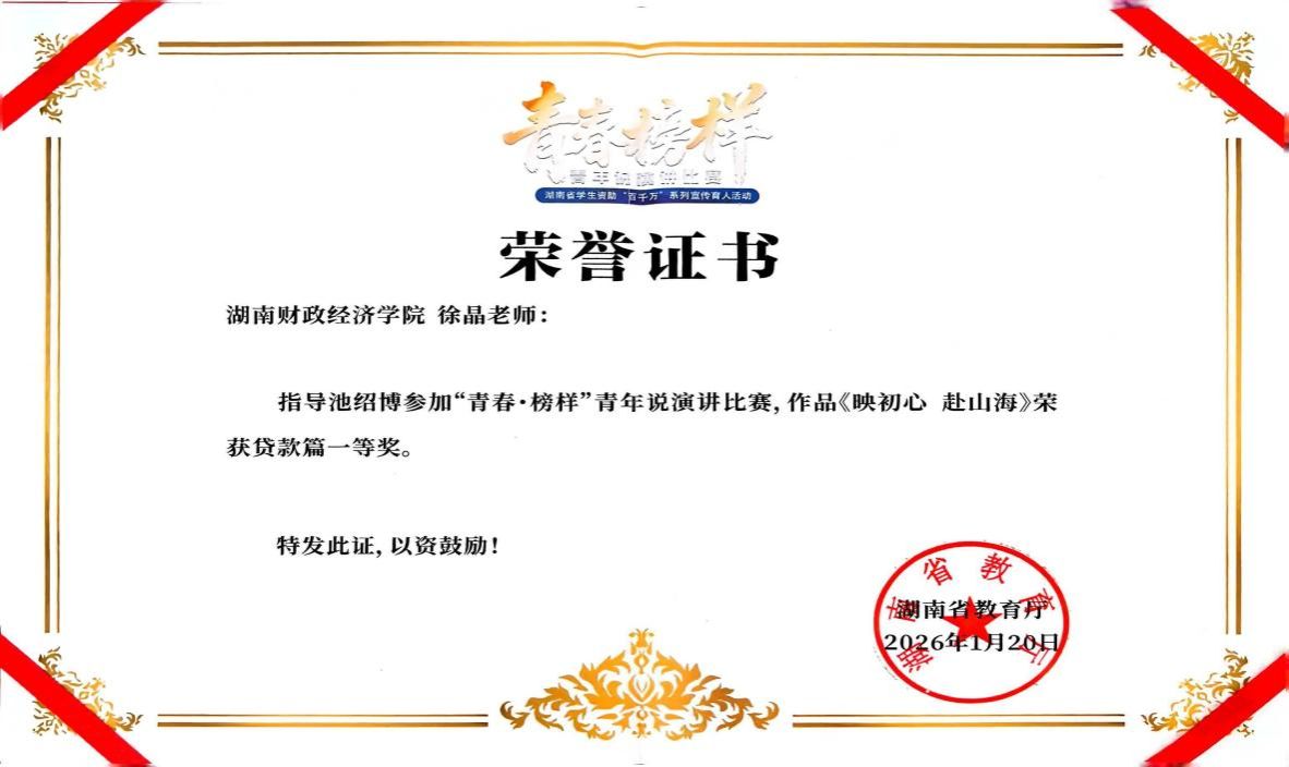 本次赛事由湖南省教育厅主办,旨在通过国家助学贷款政策的宣传,鼓励广大学子结合自身经历讲述资助护航成长的感人故事。备赛期间,学院紧扣资助育人主题,依托专业特色组织学生积极参与。徐晶老师从主题立意到表达技巧,为池绍博提供了精准细致的指导。池绍博将军旅生涯中淬炼的初心与担当融入创作,将国家资助政策助力求学的切身经历转化为真挚的情感表达。他以沉稳的台风和富有感染力的讲述,生动诠释了当代青年感恩自强的精神底色,最终赢得了省级专家组的高度认可。