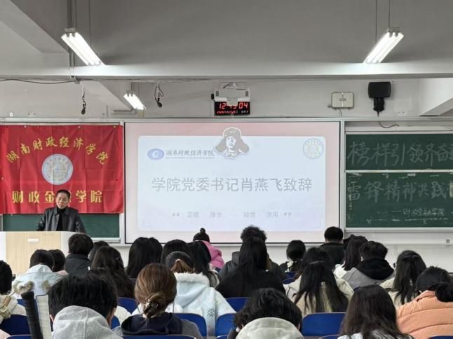 3月25日,财政金融学院雷锋动员大会暨优秀班级委员颁奖仪式在主校区3110教室隆重举行。财政金融学院党委书记肖燕飞、学工办主任易好、团总支书记方彬,及团总支学生会主席团成员、23级24级各班班委齐聚一堂,现场秩序井然,气氛热烈。