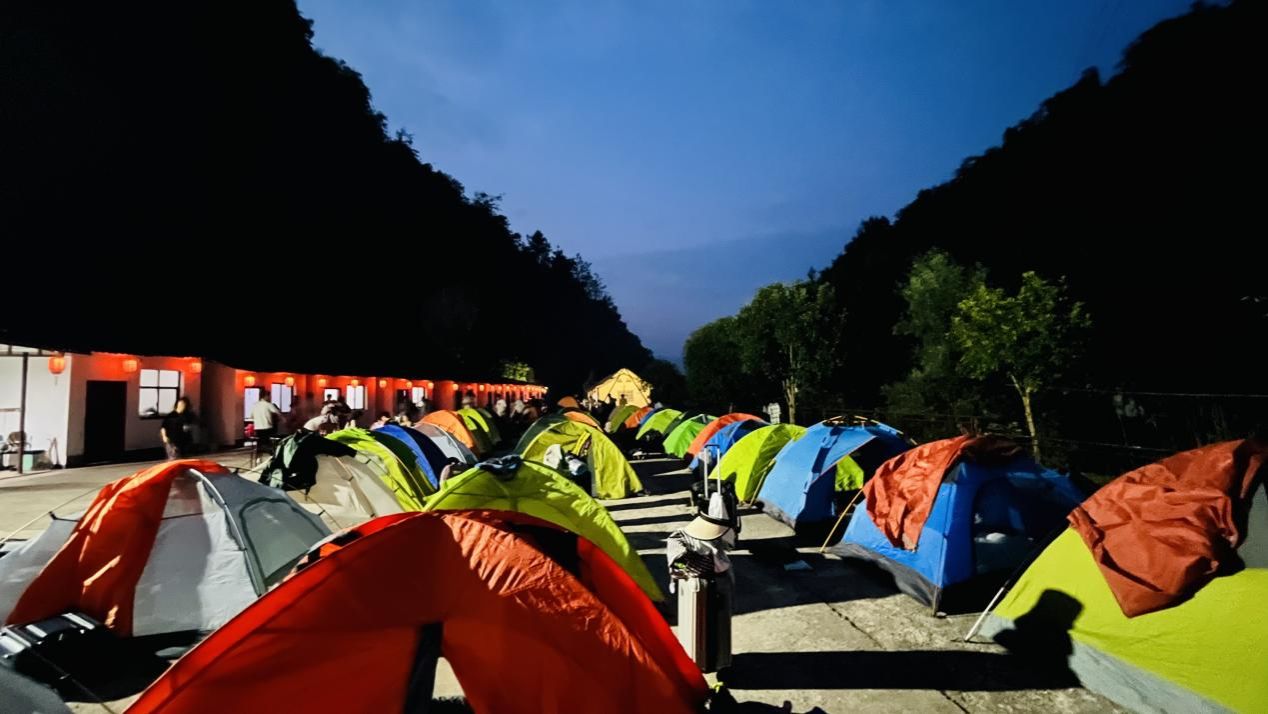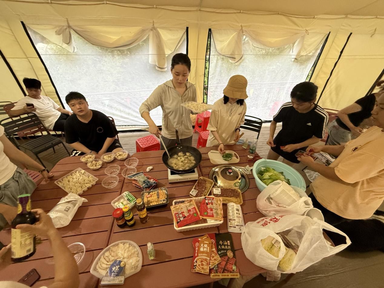 同学们在营地安营扎寨
