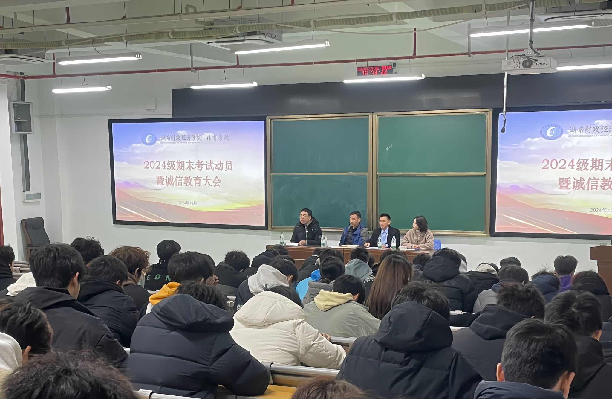 为营造积极向上的学习氛围,进一步强化学生的诚信考试意识,12月12日下午,体育学院于雷锋校区隆重举办了期末考试动员大会暨诚信教育主题活动。学院直属党支部副书记范则周、学工办主任黄涛、教务处主任汪洋、辅导员熊孝涛出席。体育学院2024级全体学生参加会议。