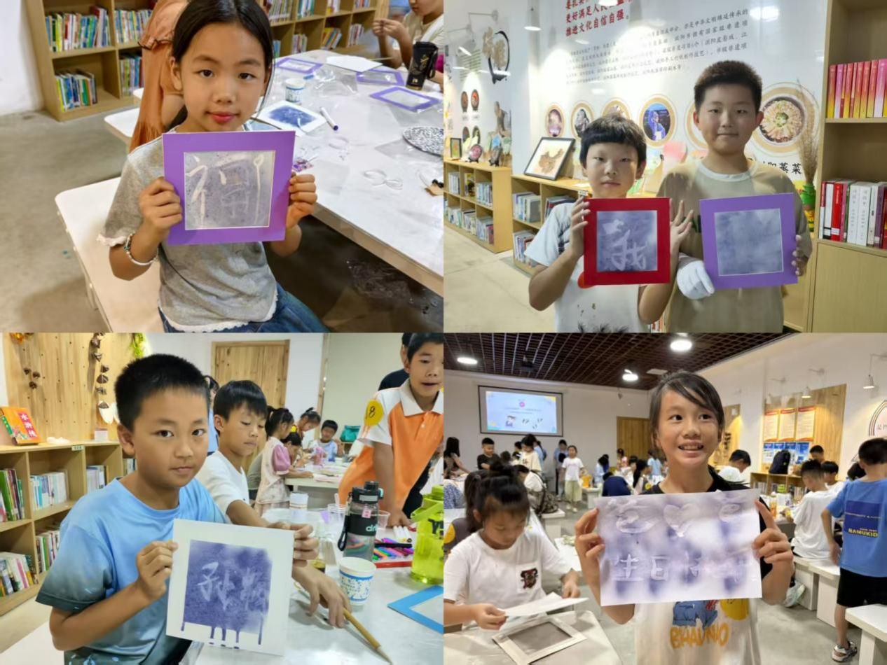 在“淀粉显影”实验环节中,志愿服务队采用“制备—反应—观察”的递进式教学。志愿队队员陈棋亮首先指导孩子们用毛笔蘸取淀粉与水按比例调配成胶体溶液,在A4纸上绘制图案或文字后,喷洒稀释的碘酒,“快看,纸上的字显色了!”“我的名字也出来了!”随着碘酒与淀粉发生特异性反应,原本隐形的字迹和图案逐渐显现出清晰的蓝色,这一过程直观地向孩子们展示了淀粉与碘的特别化学反应。