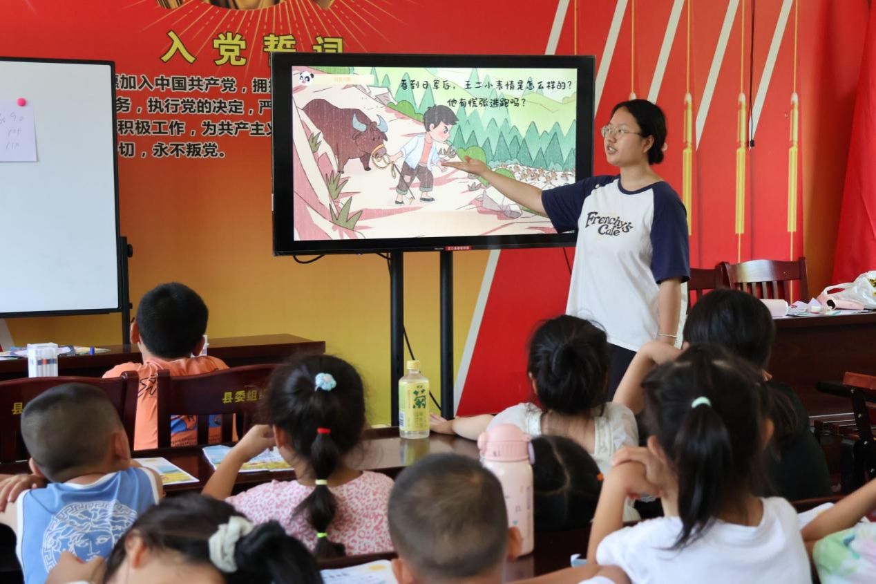 7月5日,“青马志行”队以朋辈之口讲述红色故事、用虚拟人物讲解红色人物,增强红色精神表现力、传播力和影响力,让青叶树村的孩子们近距离感受英雄的力量。