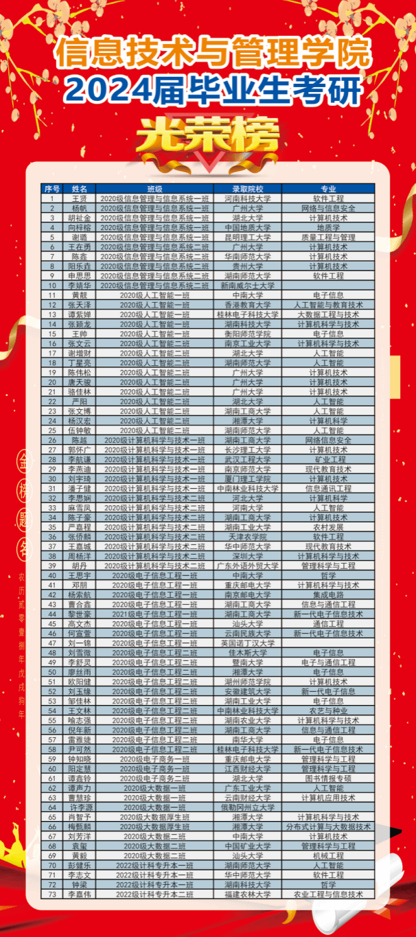 信息技术与管理学院成立于2001年1月,其前身可追溯到1994年开办的电算会计专科专业。目前学院开设计算机科学与技术、电子信息工程、数据科学与大数据技术、人工智能、信息管理与信息系统和电子商务等6个本科专业。计算机科学与技术2020年入选国家一流本科专业建设点,电子信息工程2021年入选省一流本科专业建设点,信息管理与信息系统2012年入选省级特色资助专业。计算机科学与技术是湖南省“十二五”重点建设学科、湖南省“十三五”和“十四五”应用特色学科。