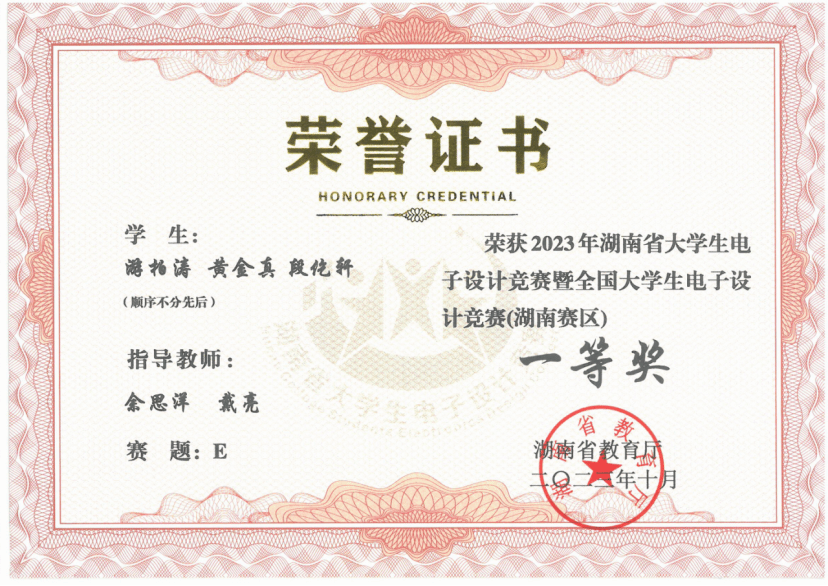 2023年湖南省大学生电子程序竞赛一等奖
