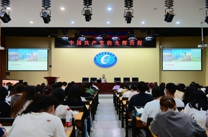 苏玲“从开天辟地,中国共产党的诞生”“没有共产党就没有新中国”“新中国成立后的艰难探索之路”“从改革开放到迈向新征程”四个方面,通过故事讲述、数据分析等,为师生们讲述了百年来党在不同历史时期的光辉历程和历史性贡献。