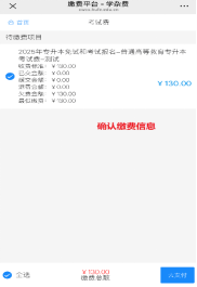2026 年普通高校专升本报名考试收费标准为 130 元/生(普通计划、免试计划),未缴纳费用的考生不予安排考试。