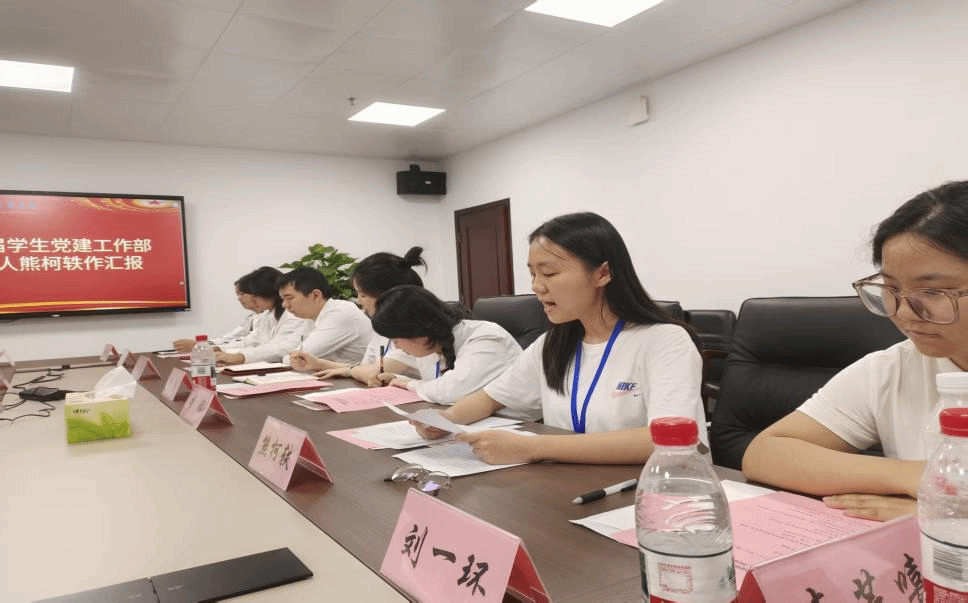 晚上7时,换届大会开始,上一届学生党建工作部负责人李冉作工作总结。