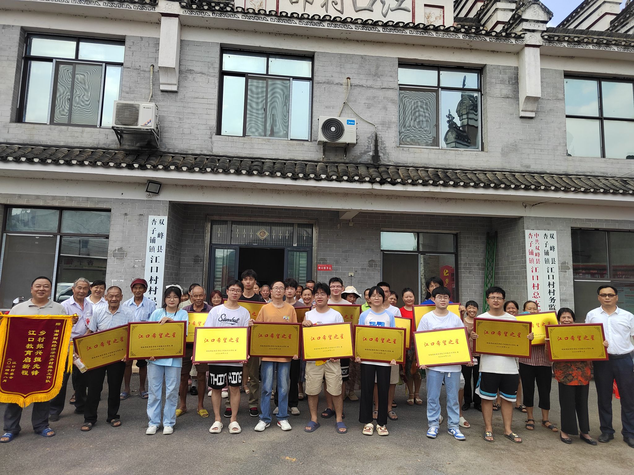 江口村村委会向best365中国官方网站乡村振兴工作队赠予锦旗,best365中国官方网站乡村振兴工作队向江口村学子颁发“江口希望之星”荣誉奖牌