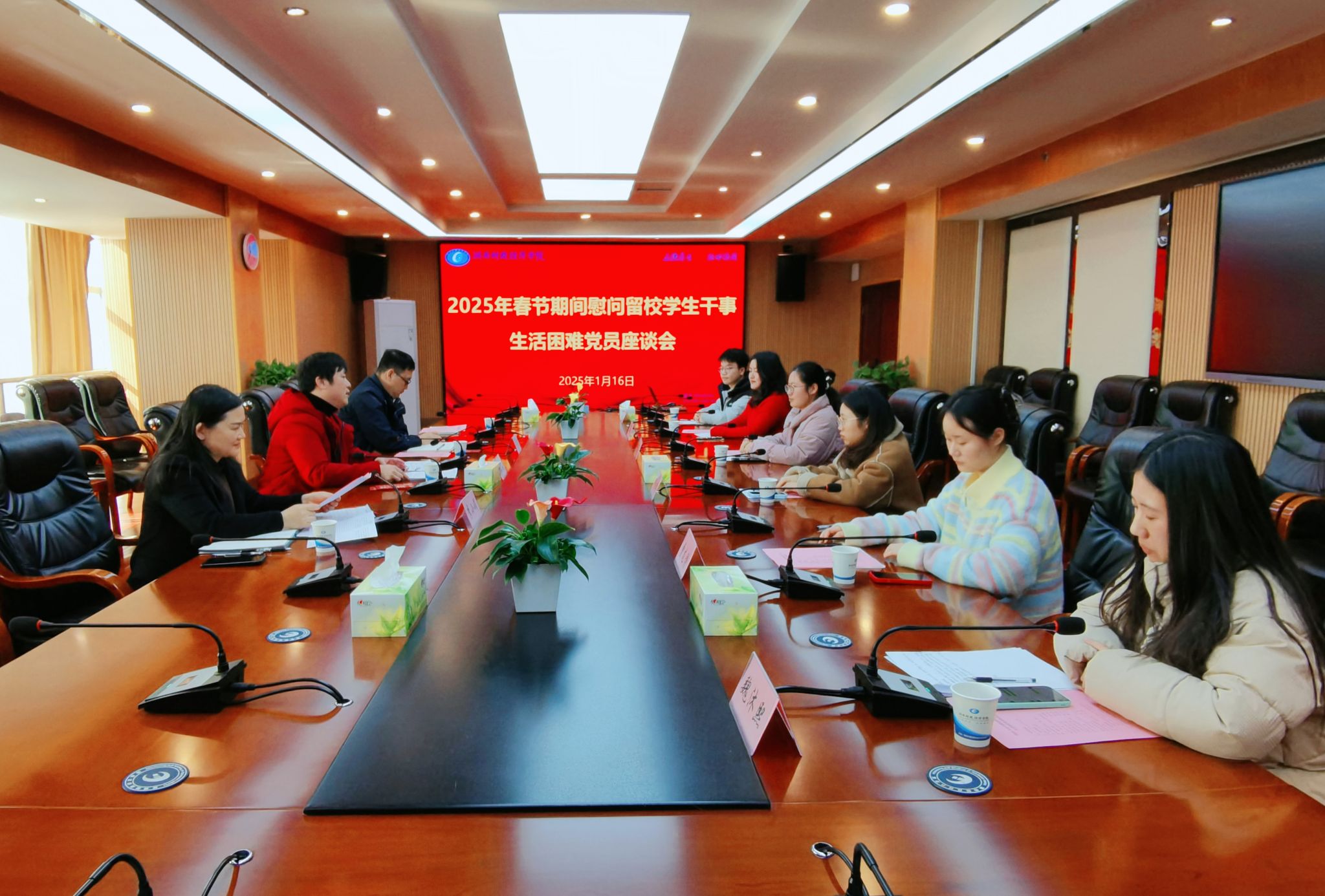 为进一步加强党内关怀帮扶工作,切实加强对留校学生干事生活困难党员的关心关爱,1月16日上午,学校召开2025年春节期间慰问留校学生干事生活困难党员座谈会。党政办公室、组织部、教师工作部、人事处主要负责人及6名留校学生干事生活困难党员参加座谈会。会议由组织部常务副部长杨锴主持。