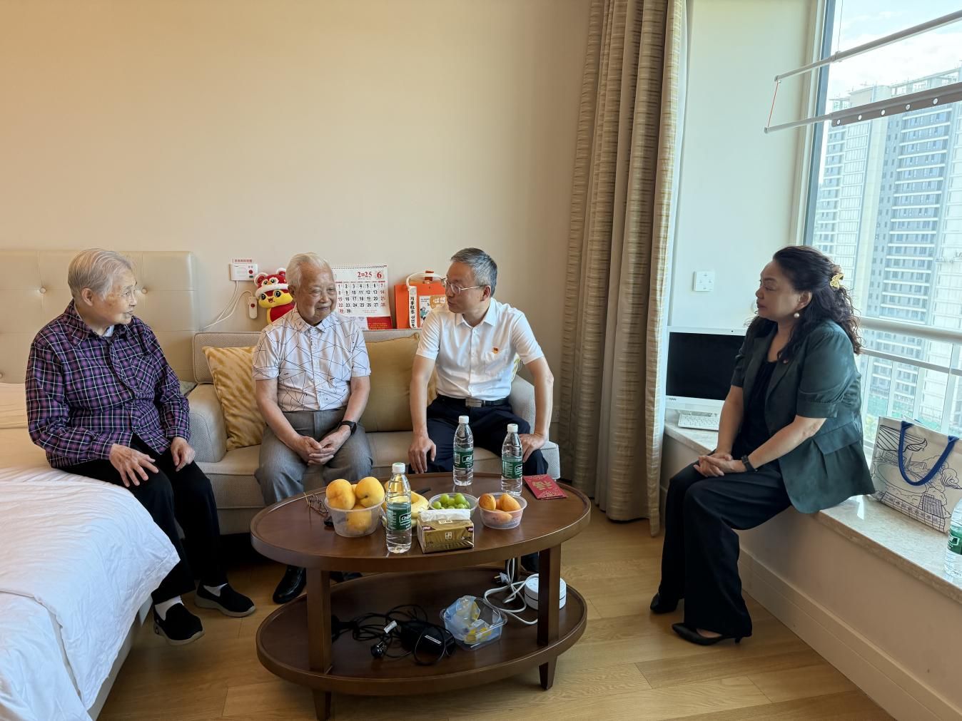 在退休老党员家中,校领导详细询问老同志身体状况和生活情况,向他们介绍学校建设发展取得的新进展、新成绩,感谢他们为党和学校发展作出的重要贡献,希望他们保重身体,继续发挥余热,为学校高质量发展建言献策。